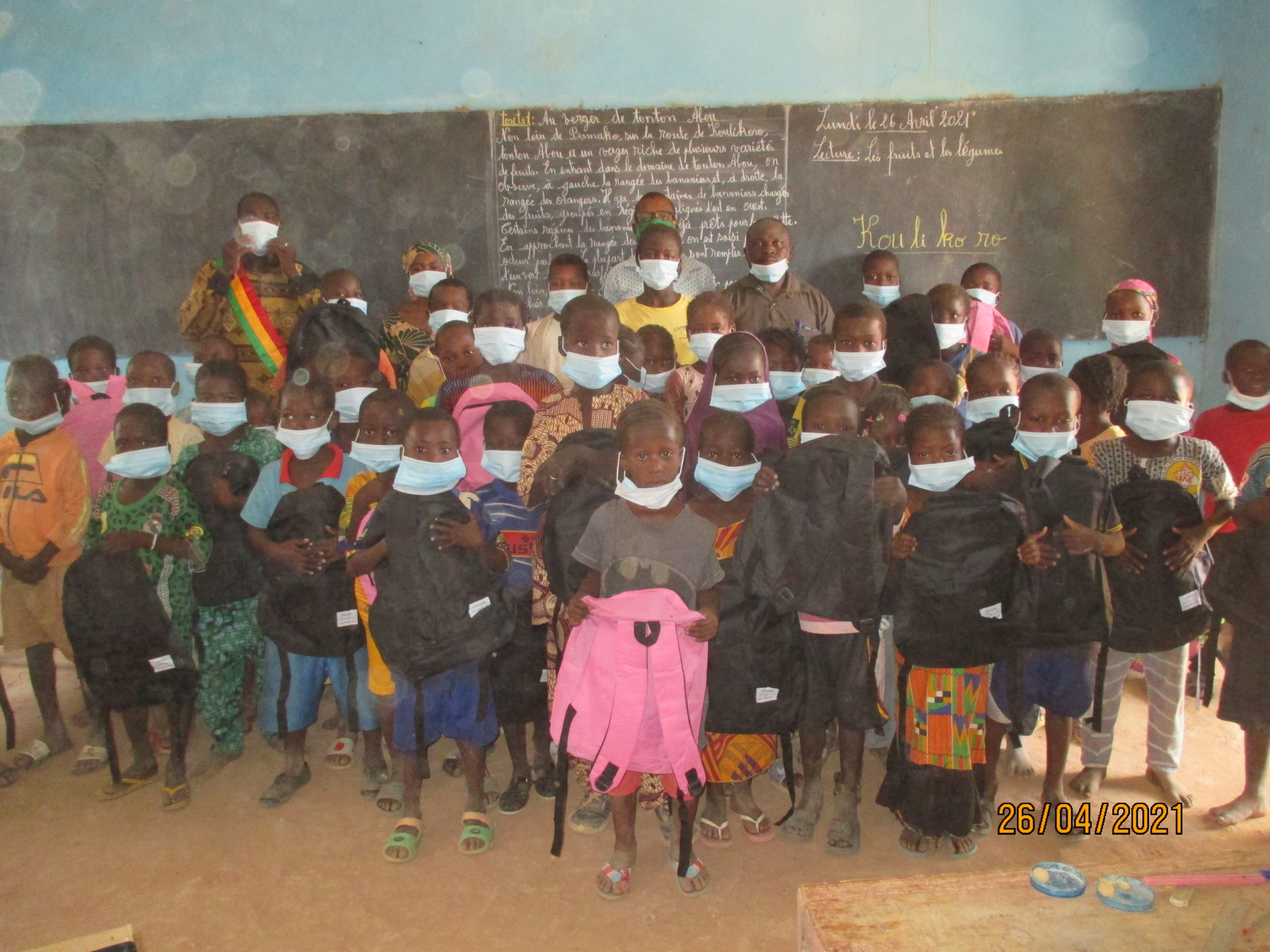 S.E.B. a procédé à la distribution de kits cartables contenant cahiers, ardoises, crayons, gommes, ainsi que des masques pour les élèves, les instituteurs ont également reçu le matériel nécessaire à l’enseignement.