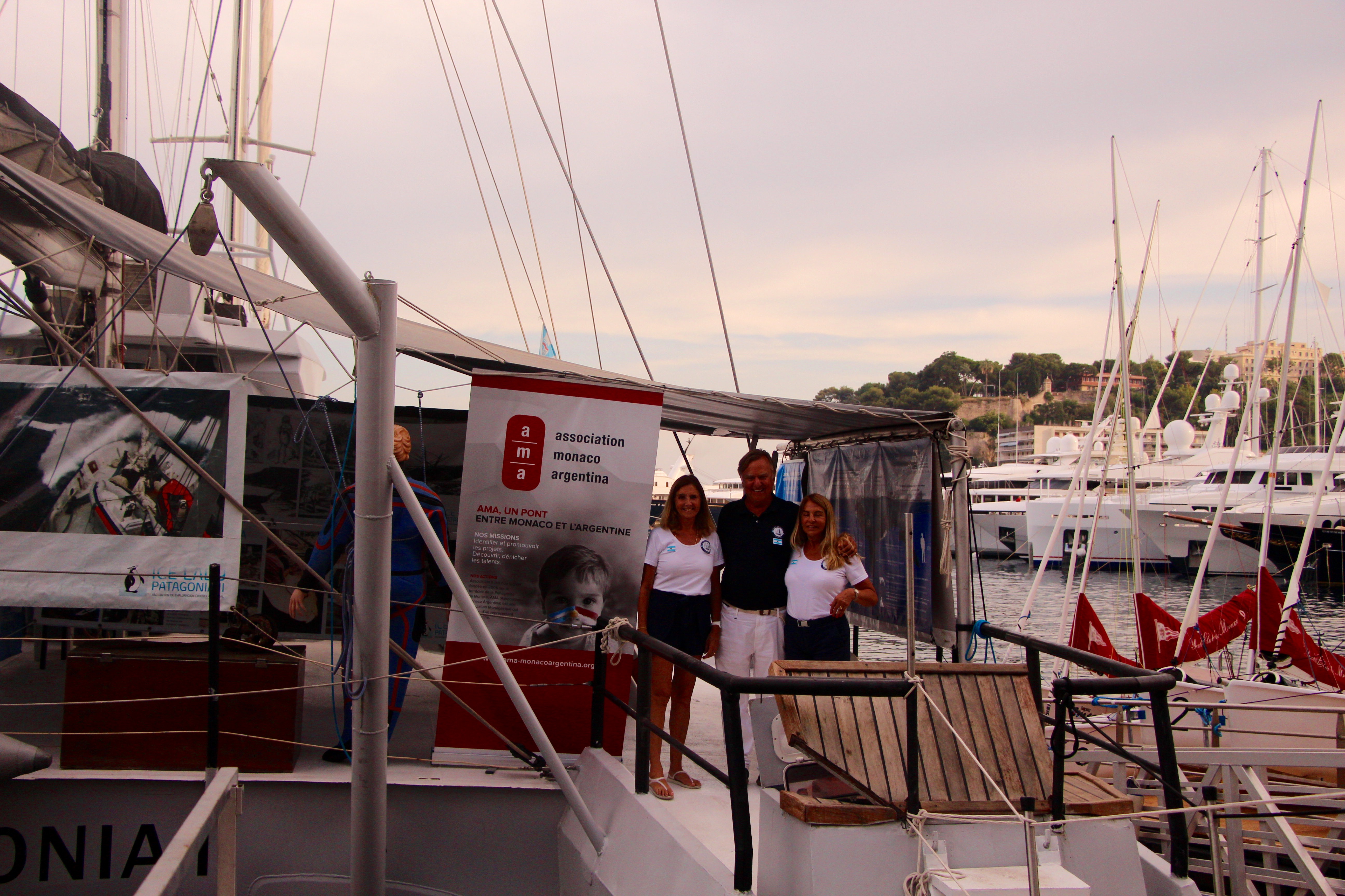 Il y a désormais 4 mois, notre équipe argentine avait souhaité bon voyage à l’équipage du Ice Lady Patagonia II depuis le port de San Fernando (Buenos Aires). Le catamaran a traversé l’Atlantique pour faire escale en Méditerranée à Majorque, Barcelone, Toulon et Saint Tropez. Mercredi 25 juillet, AMA a organisé l’arrivée du bateau dans le Yacht Club de Monaco pour promouvoir la campagne de sensibilisation avec une exposition gratuite à bord intitulée « Approchant les Mers du Sud ». Conçue pour les étudiants et le grand public, cette expédition à pour but celui d’encourager la recherche, préserver l’environnement marin et transmettre la passion pour les richesses naturelles de la Patagonie et de l’Antarctique argentine.