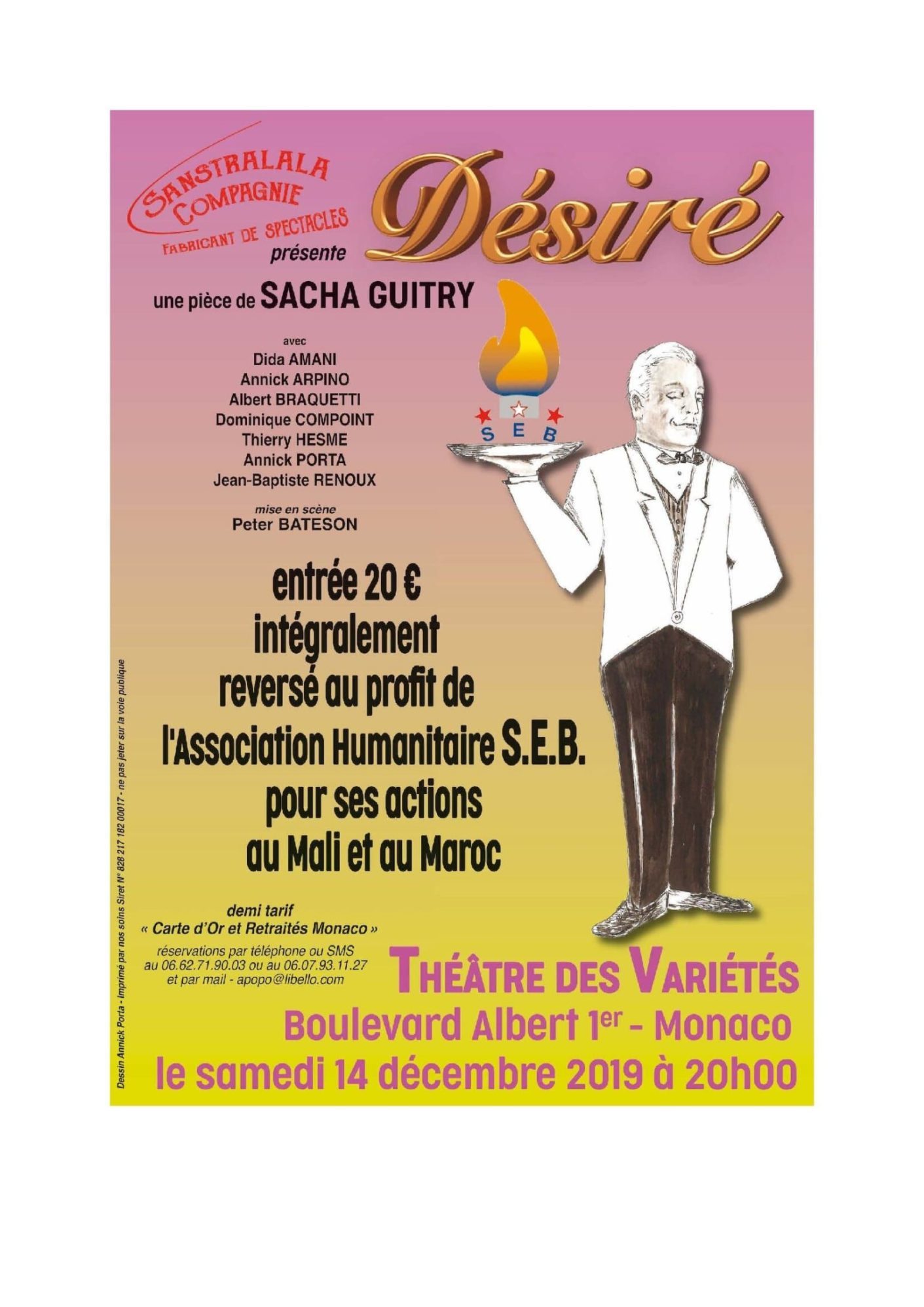 Une première pour notre association grâce à la Compagnie de théâtre « Sanstralala » qui nous a régalé avec la pièce DESIRE », une comédie en trois actes, révélant le sens de l’observation et l’humour de Sacha Guitry.