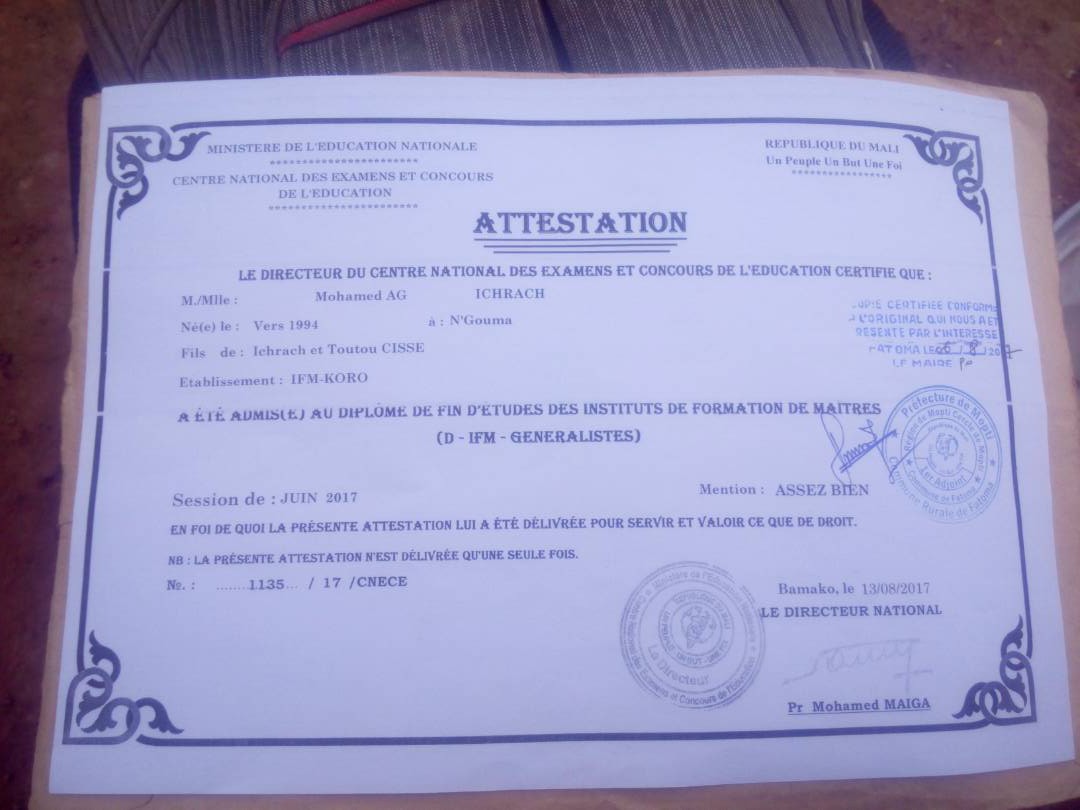 J’ai l’honneur et l’immense joie de vous envoyé en pièce jointe une copie de mon diplôme de fin d’étude a l’Institut de formation des maîtres. Option Généraliste.